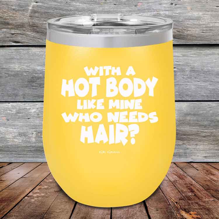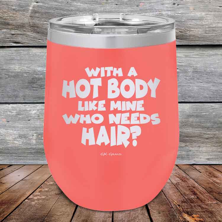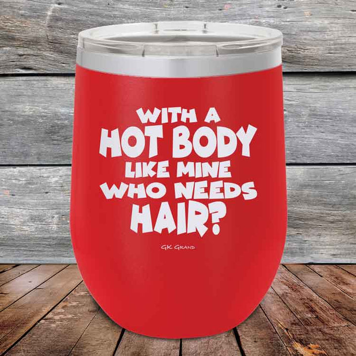 With A Hot Body Like Mine Who Needs Hair- Powder Coated Etched Tumbler
